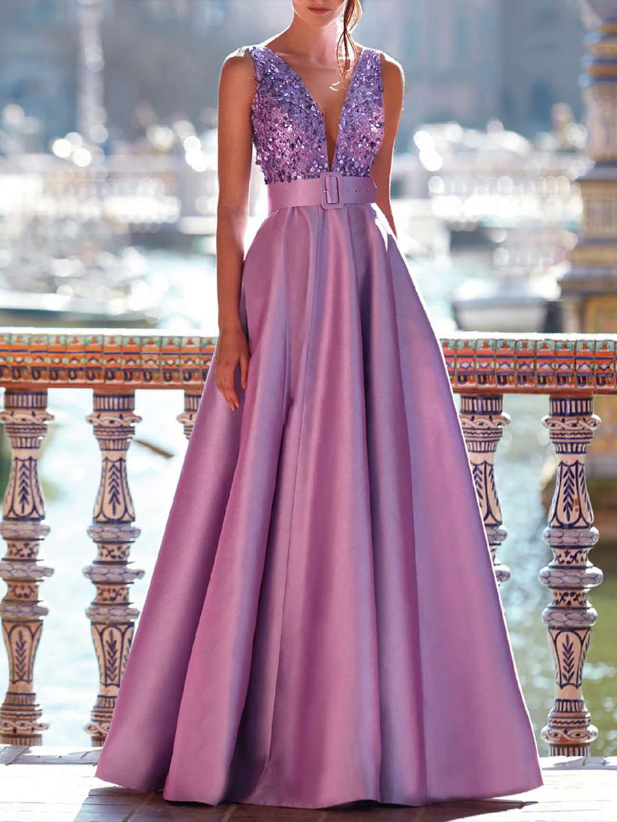Ballkleid V-Ausschnitt A-Linie Ärmellos Partykleider