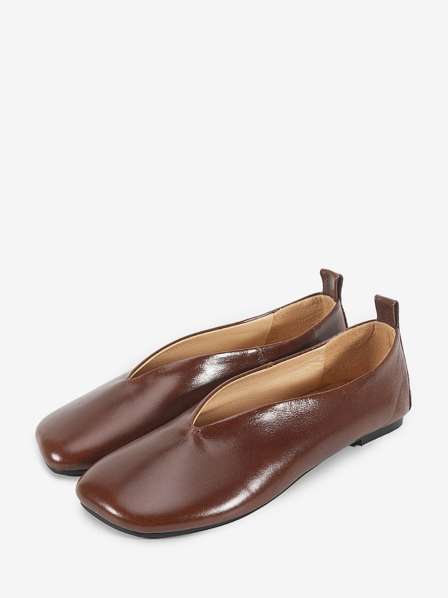 Bailarinas de piel auténtica con punta cuadrada para mujer