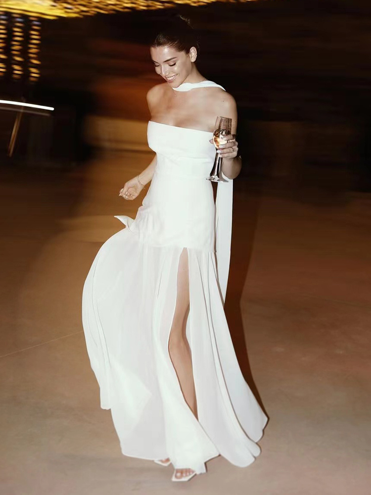 Vestido largo sin mangas con cuello halter capas y dobladillo irregular para mujer 2026