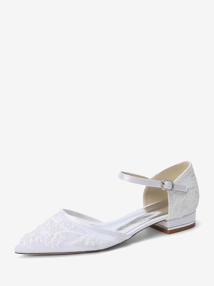 Zapatos de boda de encaje para mujer zapatos de novia planos con punta puntiaguda