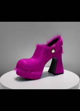 Women's Faux Fur Clogs Chunky Heel Horse Hair Slingback High Heels
